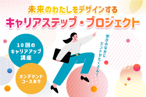 キャリアステップ・プロジェクトは、正規雇用やキャリアアップを目指し転職を希望する女性や出産や子育て等の理由で離職し再就職を希望する女性に向けた、全10回・3か月間の講座です。